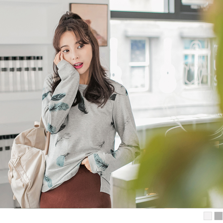 【刷卡購物享回饋】羽毛印花高含棉T恤-上衣 2019爆紅商品