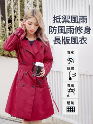 【最新購物優惠分享】防風防雨經典風衣長版外套(附綁帶 周年慶活動購物回饋