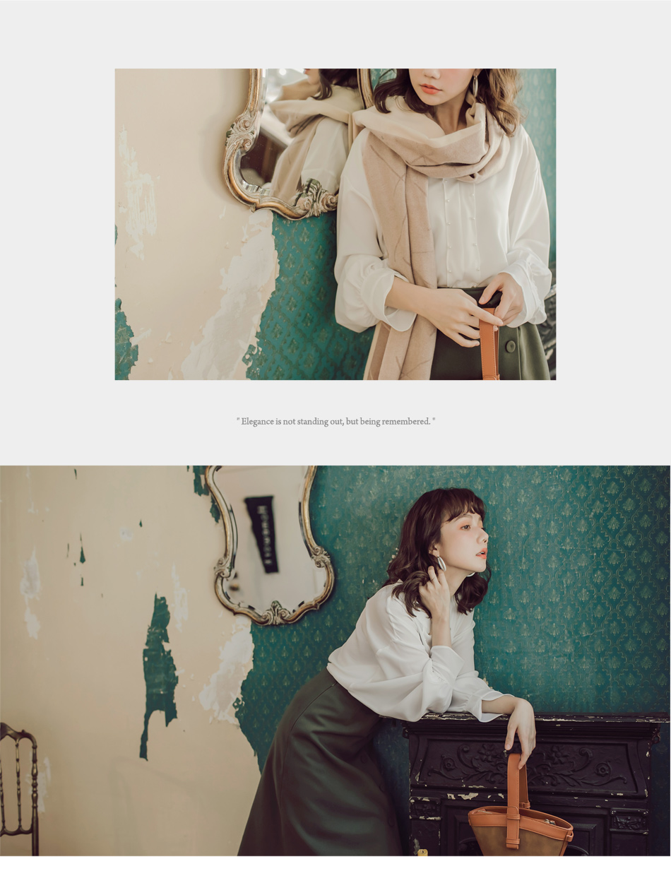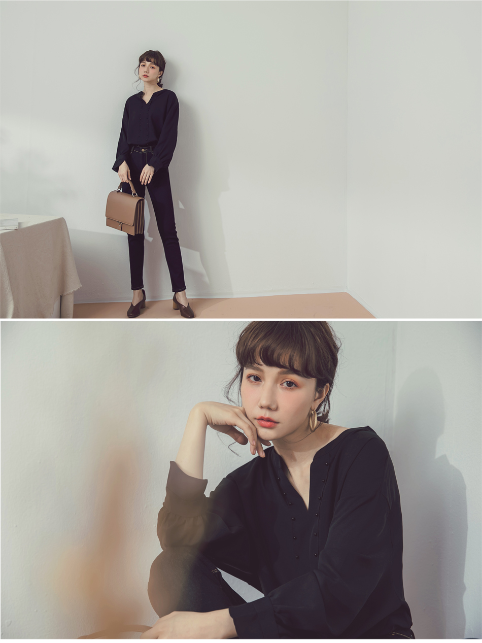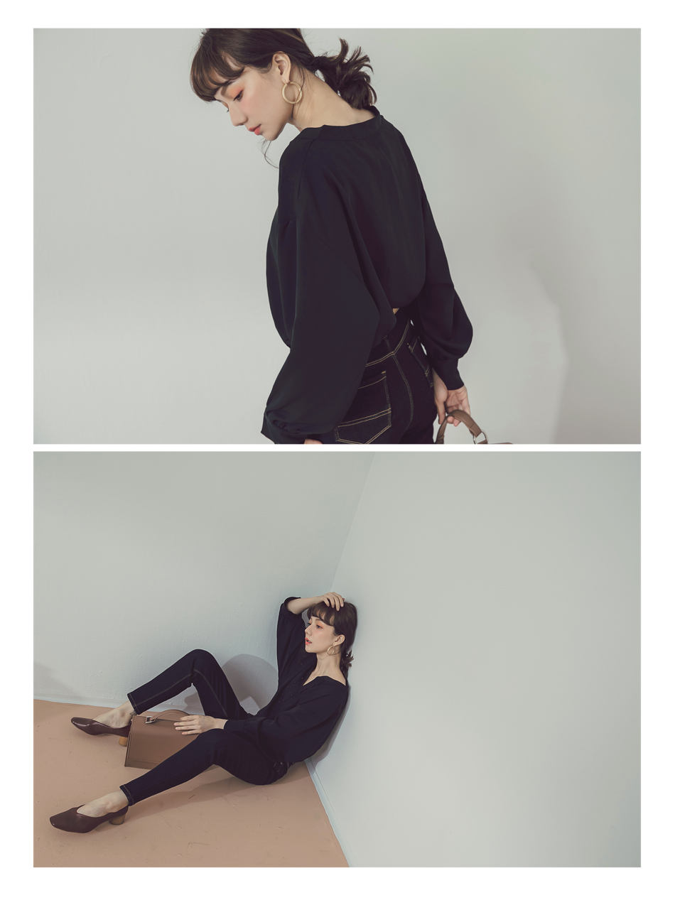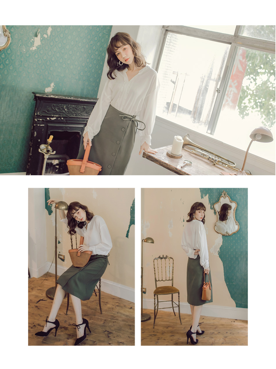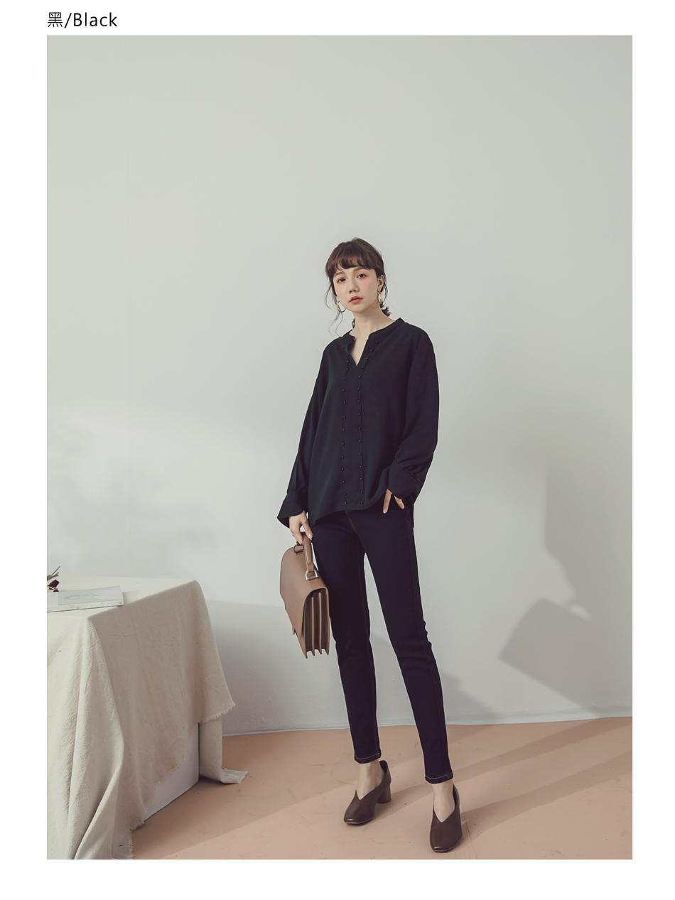 【2019年最新款】胸前珠飾半開襟前短後長雪紡上衣 省錢