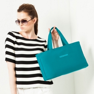 【MiPiaci 革物心語】都會經典系列- 布配皮款雙口袋托特包(1289618 孔雀藍) 超值商品