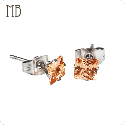【MB流行鋼飾】美鑽系列「幻彩(方)(琥珀色)(5M)」白鋼耳環 網友最愛商品
