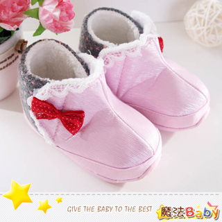 【魔法Baby】甜美蝴蝶結飾蕾絲雪靴寶寶鞋-學步鞋(粉紅-灰)-時底]計童鞋(sh1238) 業務銷售