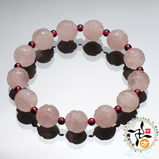 【十方佛教文物】紅石榴 +粉晶蓮花手珠12mm 培訓