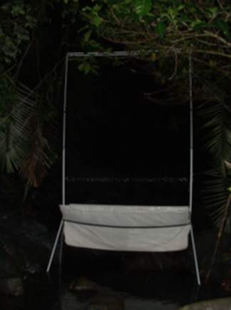 數年前謠傳中的調查蝙蝠的利器~豎琴網,終於讓我在三月時目睹了廬山真面目。 就如其名,垂直尼龍線有如豎琴弦般的排列。而蝙蝠,撞上去後隨即往下滑入袋中飛不起來~ 與傳統霧網相比,多了便利性但卻...