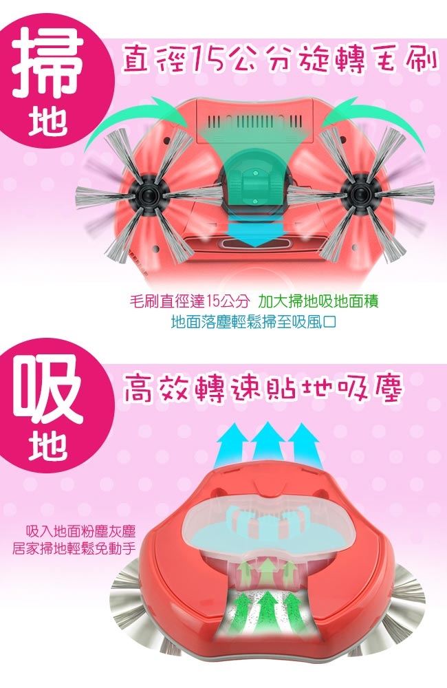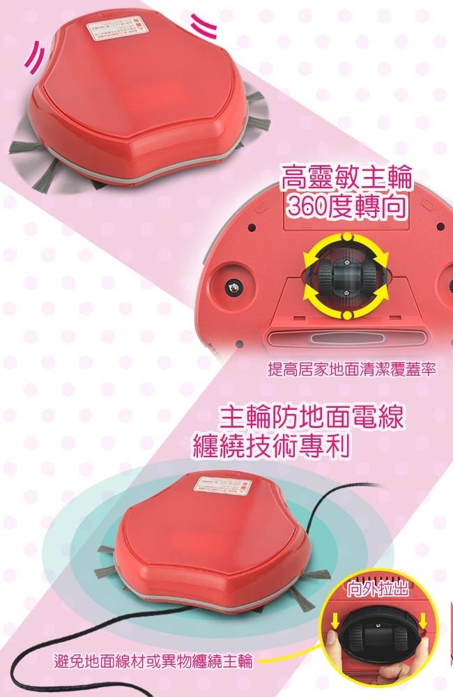 ◆高靈敏大輪轉向系統,360度旋轉,提高居家使用清潔覆蓋率及脫逃智慧