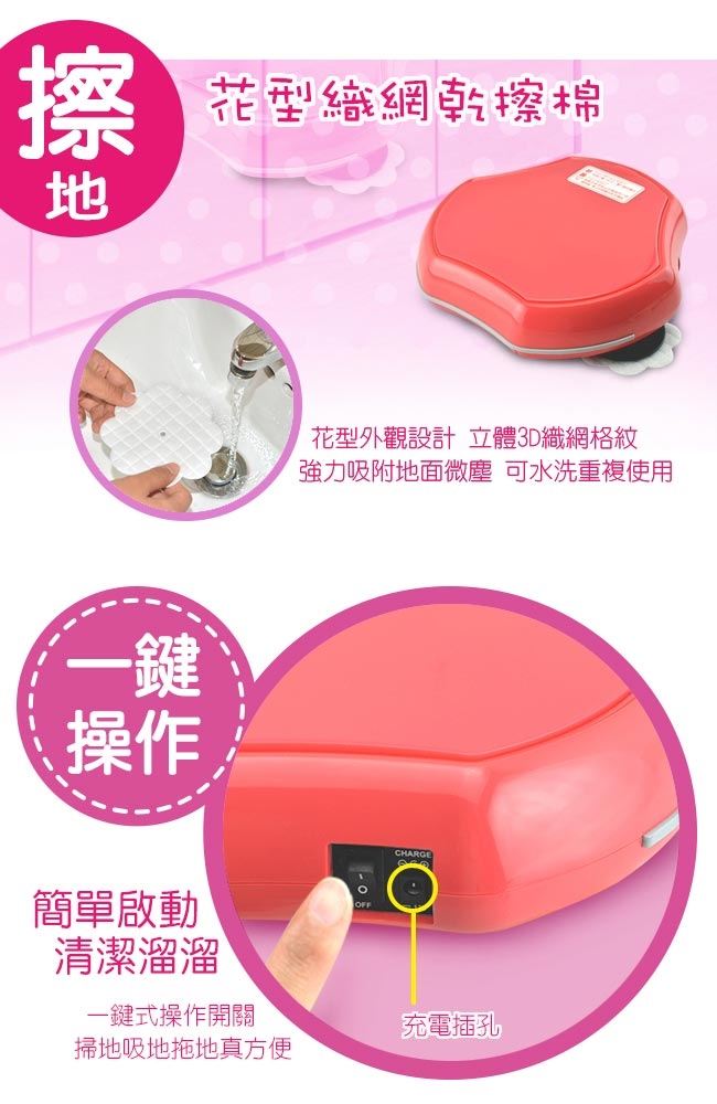 ◆附4片小花擦地棉布,可水洗,可重複使用,掃、吸、擦一次搞定
