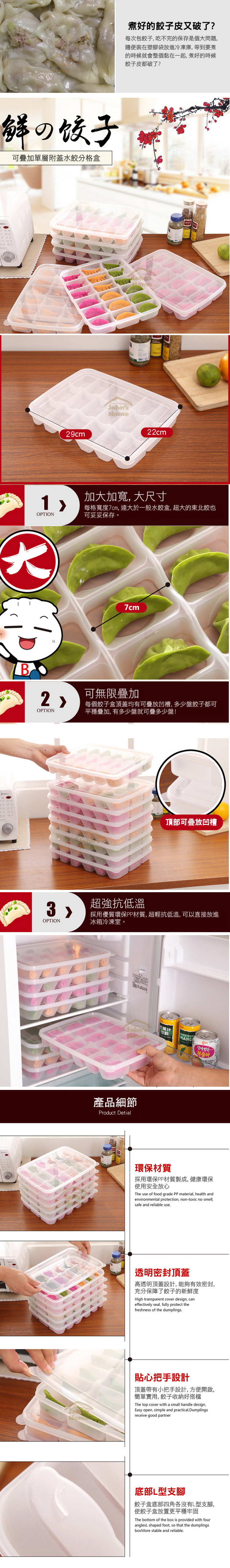可以分格儲存水餃,既不串味又省空間,每顆水餃都是獨立分開,不會有沾黏的情況,讓您煮出