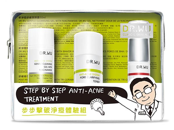 DR.WU~步步擊破淨痘體驗組(潔顏露50ml+調理露30ml+水凝乳15ml)
