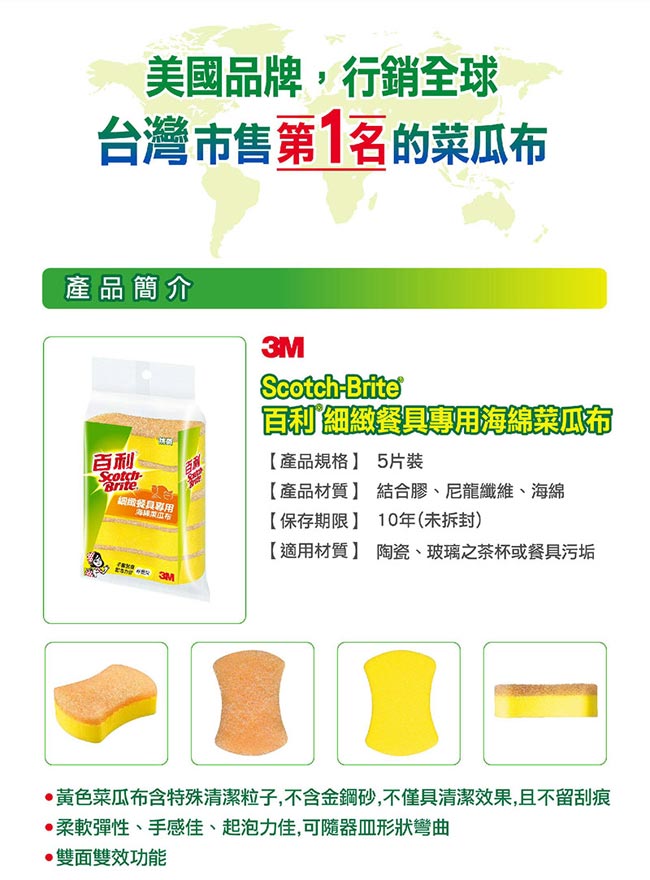 ▲ 【滿$490送口罩1片】3M 百利抗菌細緻餐具專用海綿菜瓜布好握型 (5片裝) 的實物拍攝買的更好