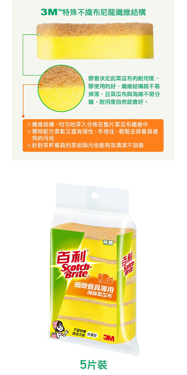 【滿$490送口罩1片】3M 百利抗菌細緻餐具專用海綿菜瓜布好握型 (5片裝) 的簡介就寫在下面