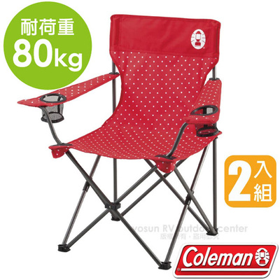 【生日送禮推薦】【美國 Coleman】圓點紅渡假休閒椅.雙扶手折疊椅.導演椅(附收納袋- 2入組 -CM-26734) 周年慶限時特價