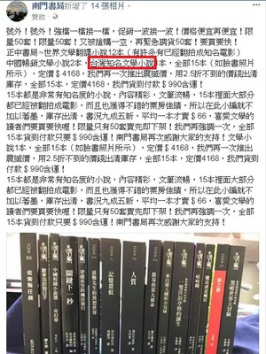 本來這個月應該只會發台慶文的,沒想到今天看到我常常買書的南門書局post出這張書籍特賣照,讓我有了發文的動...