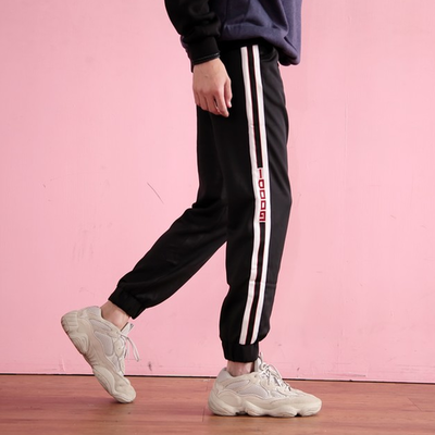【搶手商品】潮流字母織帶棉長褲(黑色) 1709 CP值爆表比價
