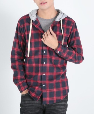 【CP值超高】休閒連帽格紋襯衫(紅色) 29075 網路熱賣產品推薦產品