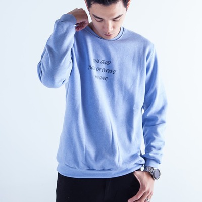 【暢銷商品】質感草寫標語刷毛長T(水藍) 298 3C商品購買優惠