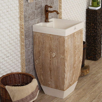 Meaka/茗嘉 人造石木紋洗手盆潔具 歐式仿古洗臉盆藝術立柱洗面盆 - 16096279288