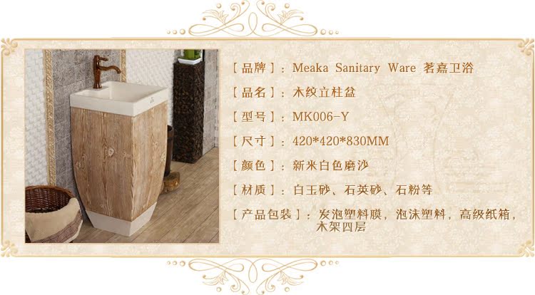 天貓購物商城Meaka-茗嘉 人造石木紋洗手盆潔具 歐式仿古洗臉盆藝術立柱洗面盆 - 16096279288