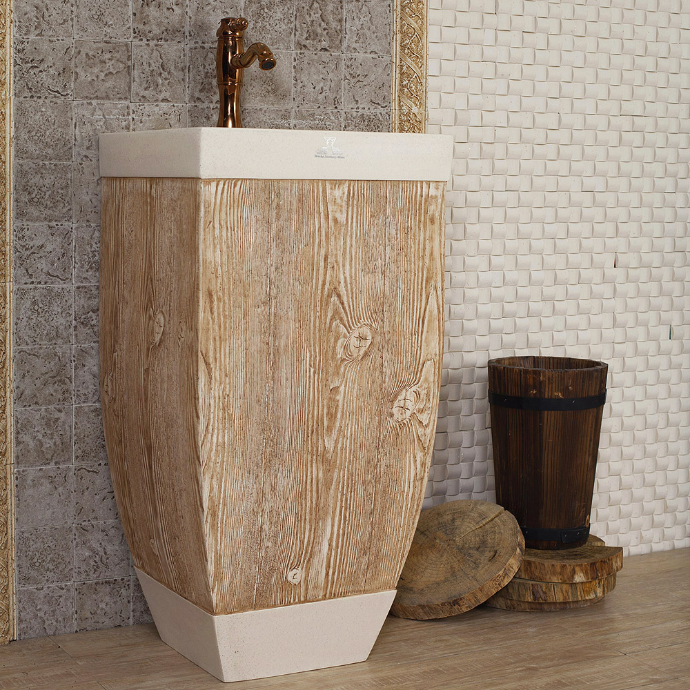 Meaka/茗嘉 人造石木紋洗手盆潔具 歐式仿古洗臉盆藝術立柱洗面盆 - 16096279288