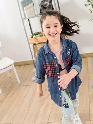 【限時商品購買折扣】星星刺繡格紋牛仔襯衫-童2色-好用商品推薦