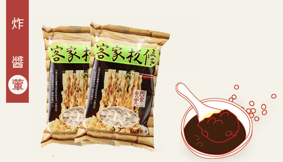 精心製作獨門醬包,帶有濃濃古早味的豆瓣香四溢,略帶Q勁的客家板條,大口吸最滿足、最過癮。