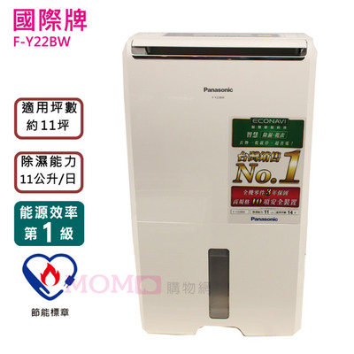 商品訊息描述國際牌11L空氣清淨ECO NAVI除濕機F-Y22BW
