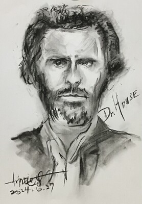 追美劇,忽然想速寫一張男主角豪斯的畫像。