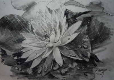 利用快下班之前空檔畫了一張睡蓮的鉛筆畫,是由我的八號睡蓮為樣稿而來的.