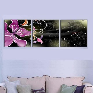年節購物家具換新到MOMO【TIME ART】靜音機芯三聯式時鐘 無框畫鐘 二畫一鐘掛鐘(60-60-3.5cm M-0