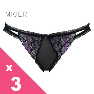 年節下殺折扣東森購物[MIGER密格內衣]滾邊蕾絲網紗性感中低腰三角褲-桃紅色+葡萄紫+藍色 網友最愛商品