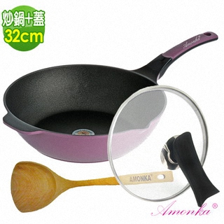 【AMONKA】晶鑽鈦合金六層不沾炒鍋(32公分紫色含蓋) 人際關係