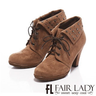【Fair Lady】時怵]術師 鉚釘裝飾反摺繫帶踝靴(可可) 口語表達