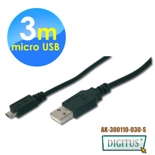 【曜兆DIGITUS】USB2.0轉microUSB2.0-3公尺手機傳輸線(德國品牌高品質線材) DISC