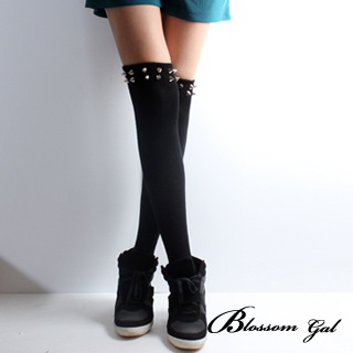 推薦momo熱銷商品【Blossom Gal】搖滾立體鉚釘膝上襪(銀色)