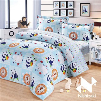 7net購物網【西崎-動物樂園.藍】雙人四件式精梳棉兩用被床包組_0