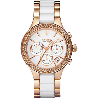 momo,momo購物台,momo購物網>【DKNY】陶瓷夫人三眼晶鑽腕錶-玫塊金(NY8183)