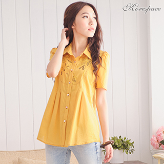 商品:【模兒空間】浪漫刺繡舒柔純棉襯衫(典雅黃)*1
