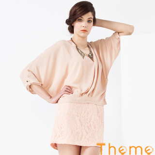 Theme【TA9WP9WD5093】層次感兩件式蕾絲連身裙(粉紅)