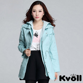 momo購物台,momo購物網:【KVOLL大尺碼】湖藍色連帽收腰風衣外套