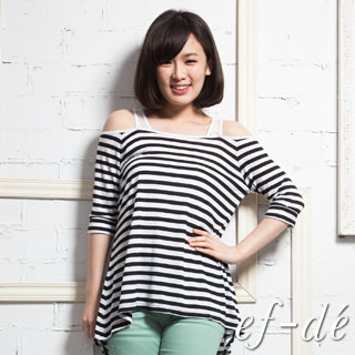 【ef-de】蕾絲細肩拼接橫紋上衣(黑)那裡買