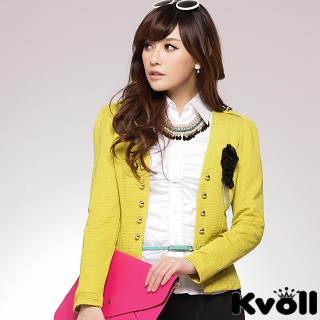 momo購物台,momo購物網:【KVOLL中大尺碼】薑黃色雙排珠扣配胸花百搭小外套