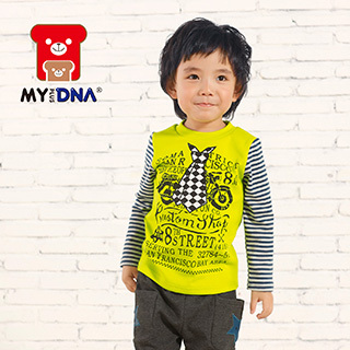 momo購物台,momo購物網:【MY+DNA熊本部】條紋接袖上衣-亮綠(D1095-42)