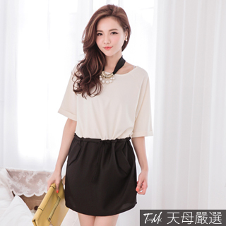 momo購物台,momo購物網:【天母嚴選】氣質配色抽繩口袋洋裝(共二色)