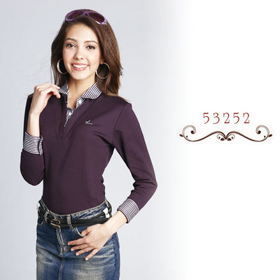 商品訊息描述: 【LEIDOOE】假兩件深紫女款長袖POLO衫(53252)