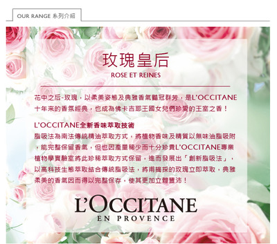 L’OCCITANE巧妙融合佛卡吉耶王國四位皇后所珍愛的格拉斯玫瑰、保加利亞玫瑰、摩洛哥玫瑰及土耳其玫瑰香氣,