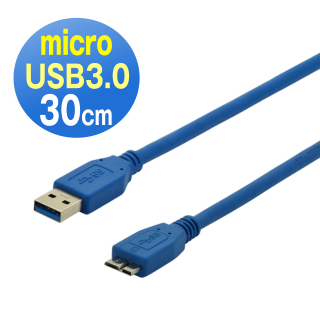 【曜兆DIGITUS】USB3.0A公轉microB公線*30公分藍色(德國品牌高品質高線徑線材)強烈推薦給你!網路上有很多評比的文章