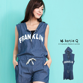 【katieQ】英文字樣丹寧連帽套裝-F(藍)