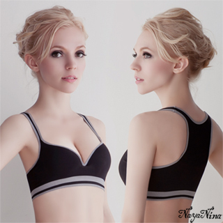 【Naya Nina】深V羽型胸墊無鋼圈工字背運動內衣(黑配灰邊M-L)