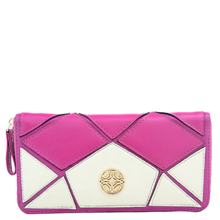 【達賀尊爵】歐美大牌撞色拼接大容量皮夾(玫紅)