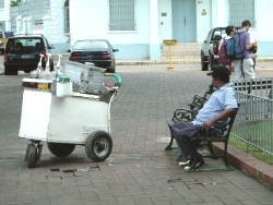 因為買了這台小相機 我想我是偷拍上了癮了 離開巴拿馬那天 終於起了早走到飯店對面拍下那個盤算好久的教堂 路上經過一個老伯 起意了 回來的路上見不著他 正惱著錯失機會 卻瞥見他已晃蕩...
