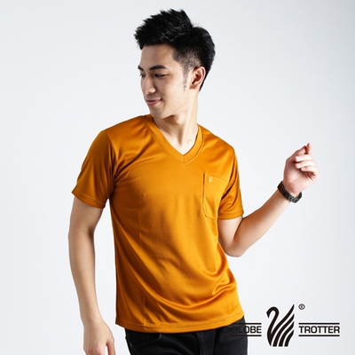 【遊遍天下】MIT男款抗UV涼爽吸濕排汗V領機能衫S106土黃-網